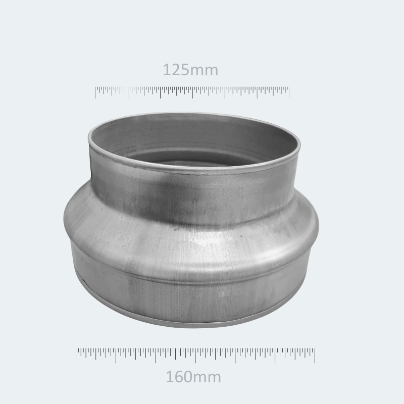 Pressed Metal Ducting Reducer - Galvanised Steel - 160mm to 125mm